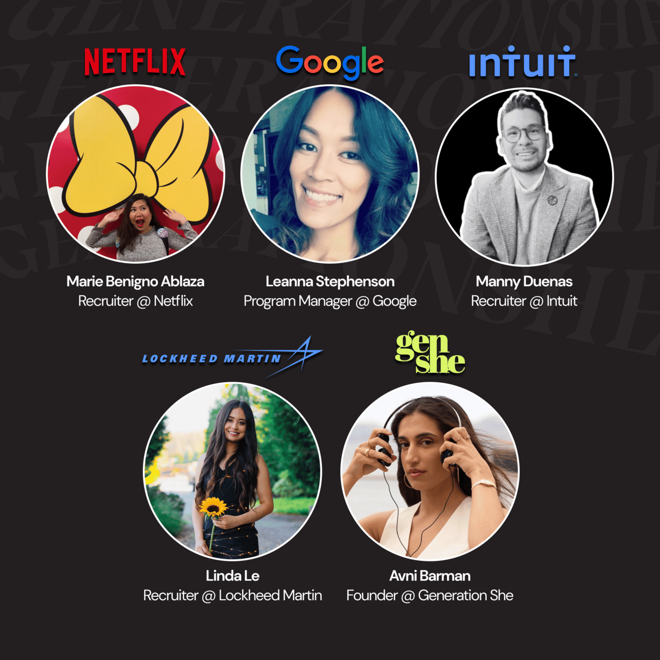 We’re giving you a full hour with FOUR big tech recruiters where you can ask them literally anything. Our panelists work at some of the world’s biggest Fortune 500 companies - Netflix, Google, Intuit, and Lockheed Martin.